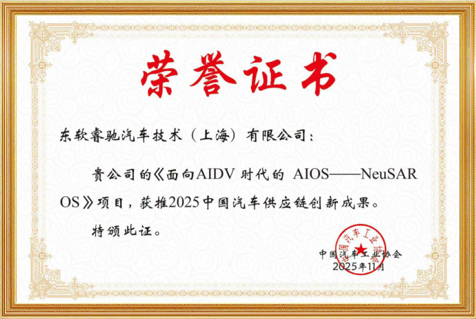 近日,以“鏈動產(chǎn)業(yè)生態(tài),新質(zhì)驅(qū)動未來”為主題的2025中國汽車供應(yīng)鏈大會在蕪湖舉辦。東軟睿馳“面向AIDV時代的AIOS——NeuSAR OS”榮獲“2025中國汽車供應(yīng)鏈創(chuàng)新成果”,已成為連續(xù)五年獲得此推薦的汽車供應(yīng)鏈企業(yè)。